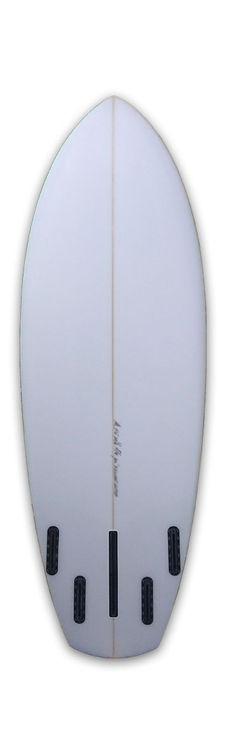 この長さからは想像が出来ない程の浮力がレトロボード並みのテイクオフの早さを可能とし、ボリュームのあるソフトなレールとフラットなプレイニングエリアに絶妙な深さで入ったシングル・ダブルコンケーブが小さいパワーの無い波でも驚くほどのピードを生み出してくれます。